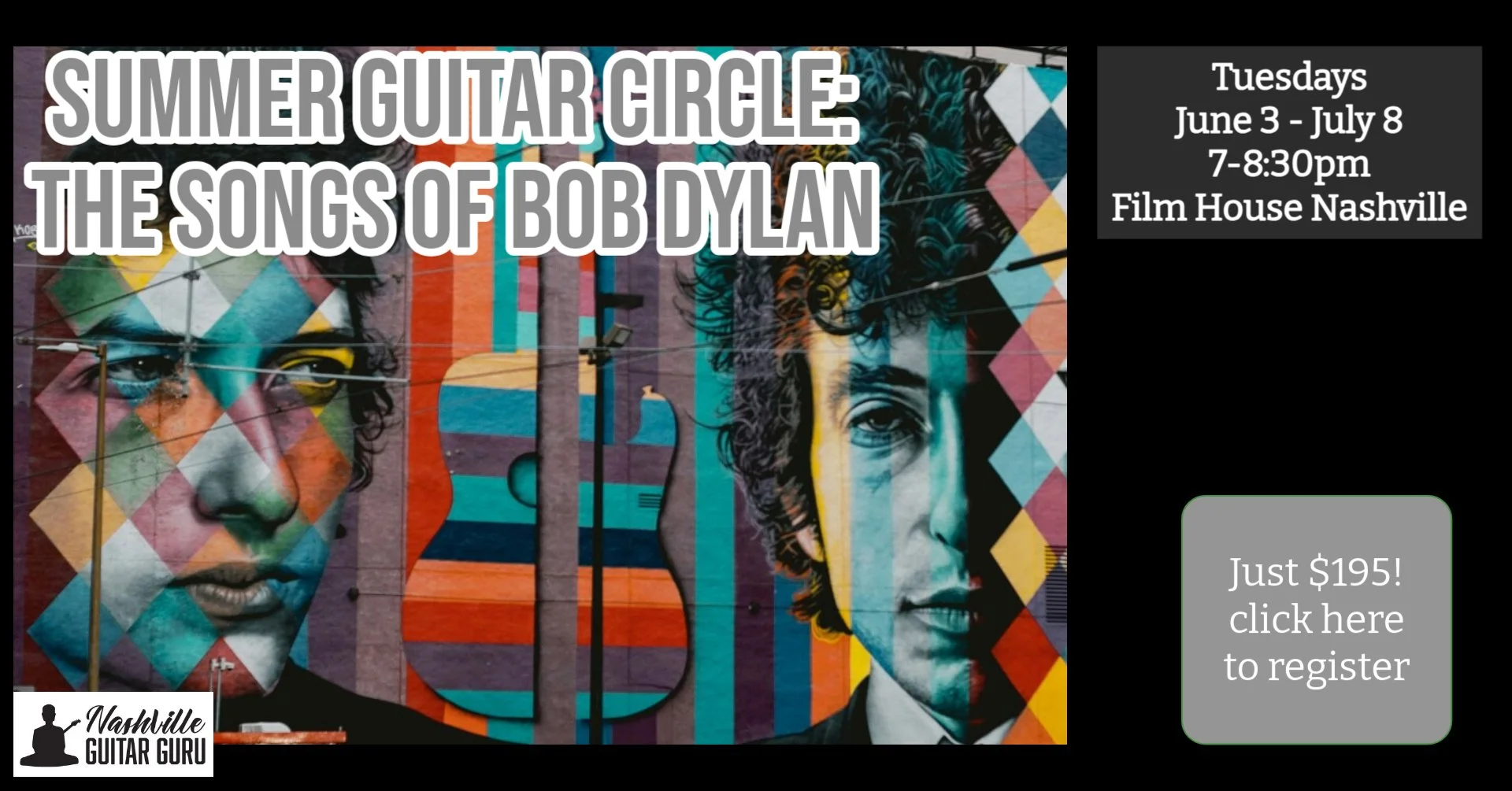 We learn the basics of each song so campfire strummers can play simple parts, while exploring how more advanced players can add and embellish at their own level. This time around, we will focus on the songs of Bob Dylan.